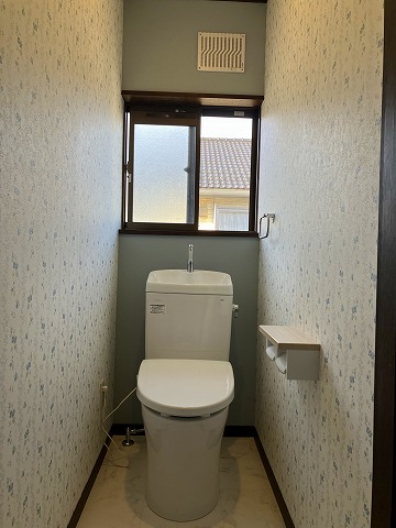 アクセントある壁紙でお気に入りのトイレ空間に。